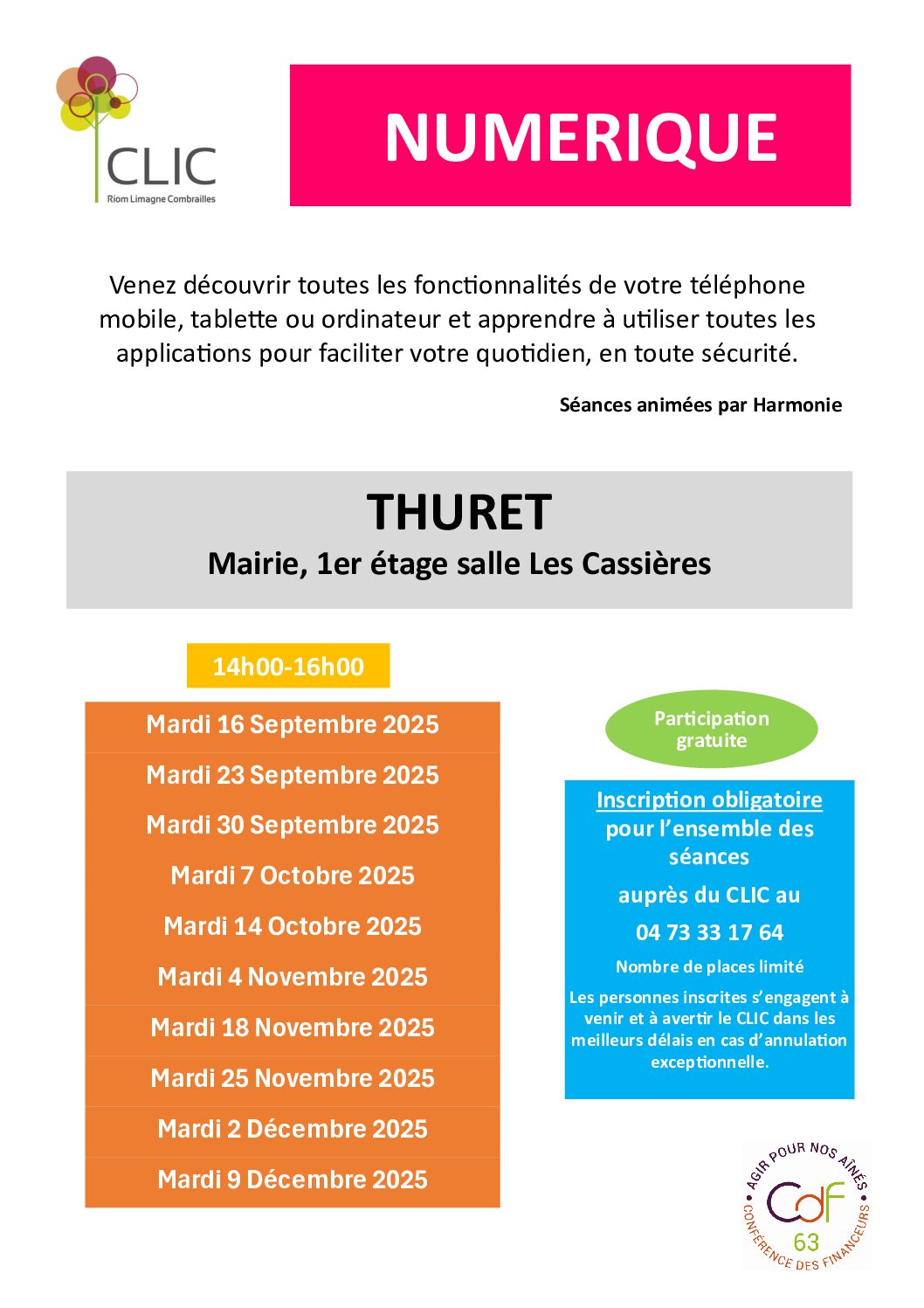 Inscriptions pour l’ensemble des séances. Calendrier complet sur le flyer. Venir avec son smartphone, sa tablette ou son ordinateur portable.
